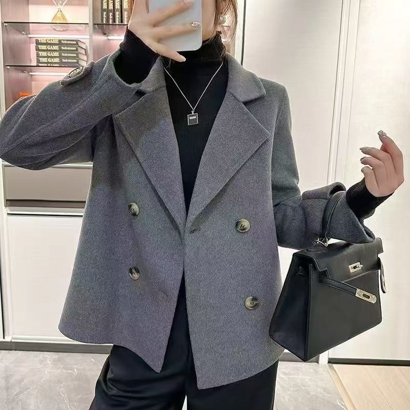 【代理】2025春のダブルボタンの短い両面のコート女性のファッションスーツの毛のコート女性