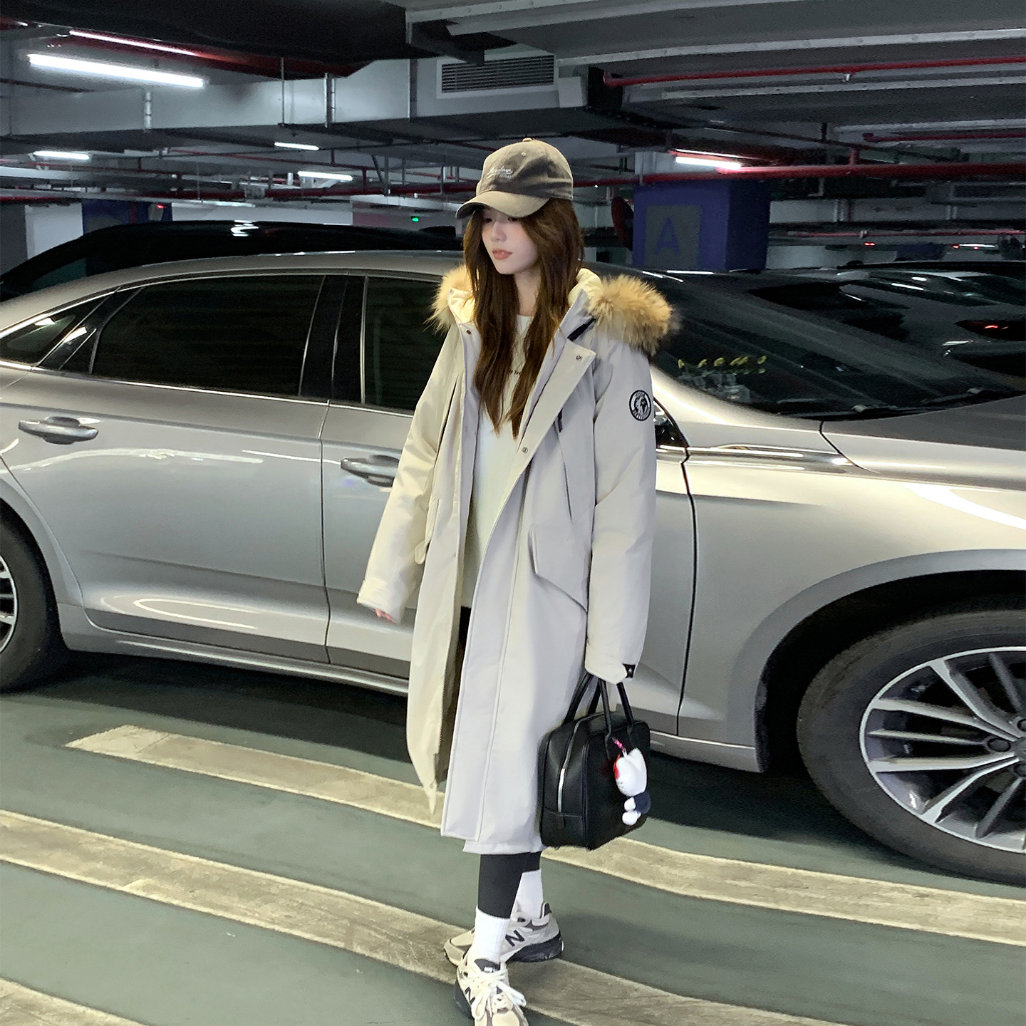2025新款大毛领中长款加厚宽松小个子时尚休闲棉服女粉色棉衣