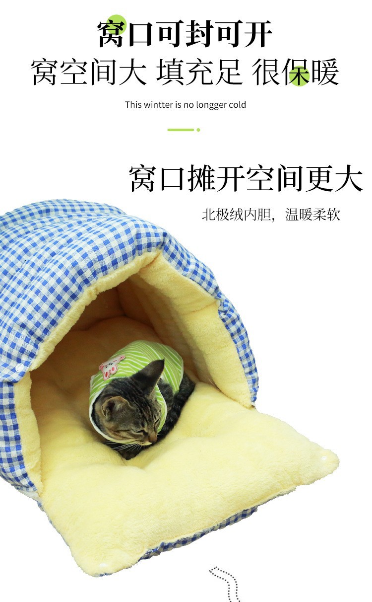 四季通用の解体・洗濯ハウス閉鎖型猫ベッド冬猫保温寝袋にベルベットを加えて小型犬小屋を厚くする