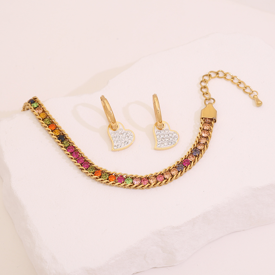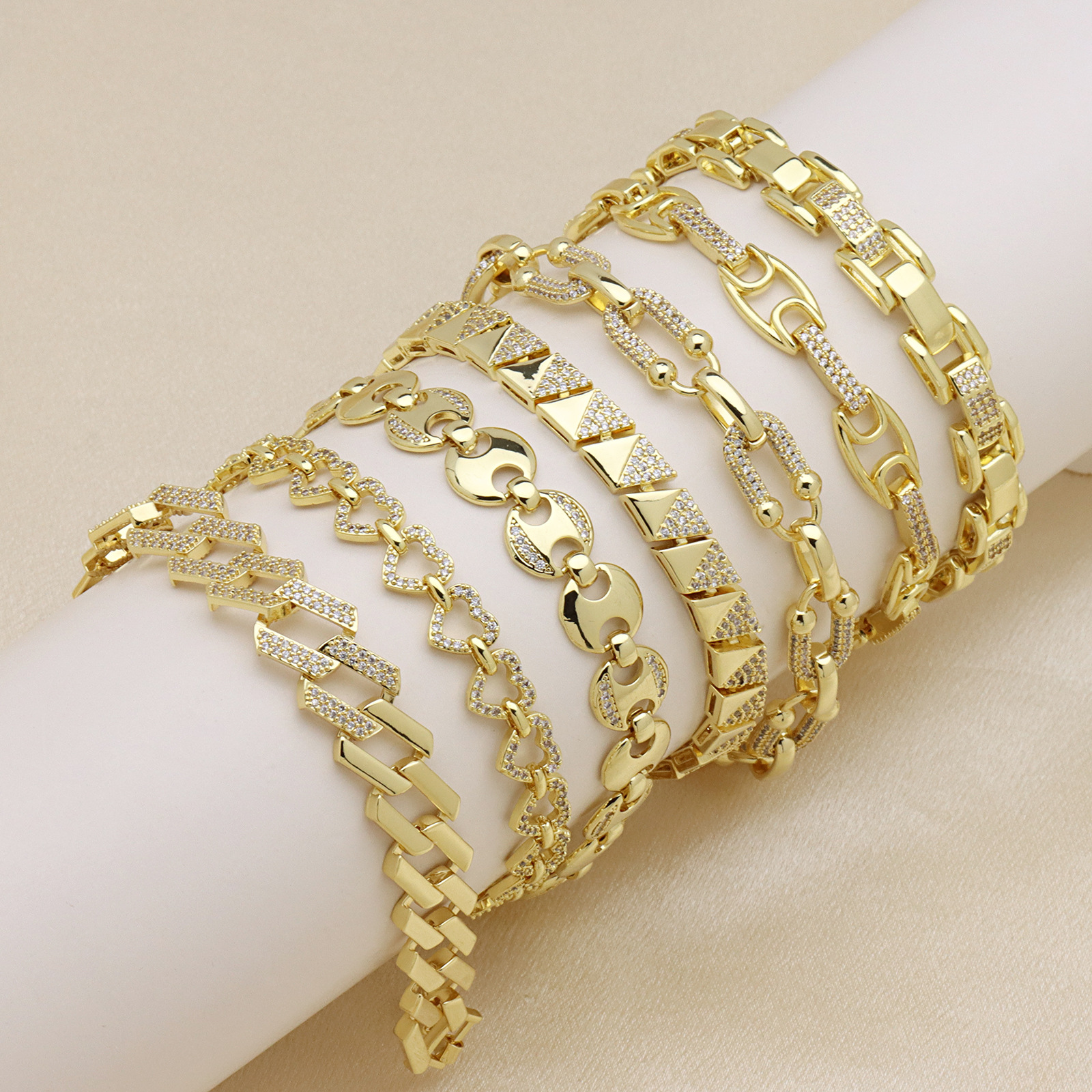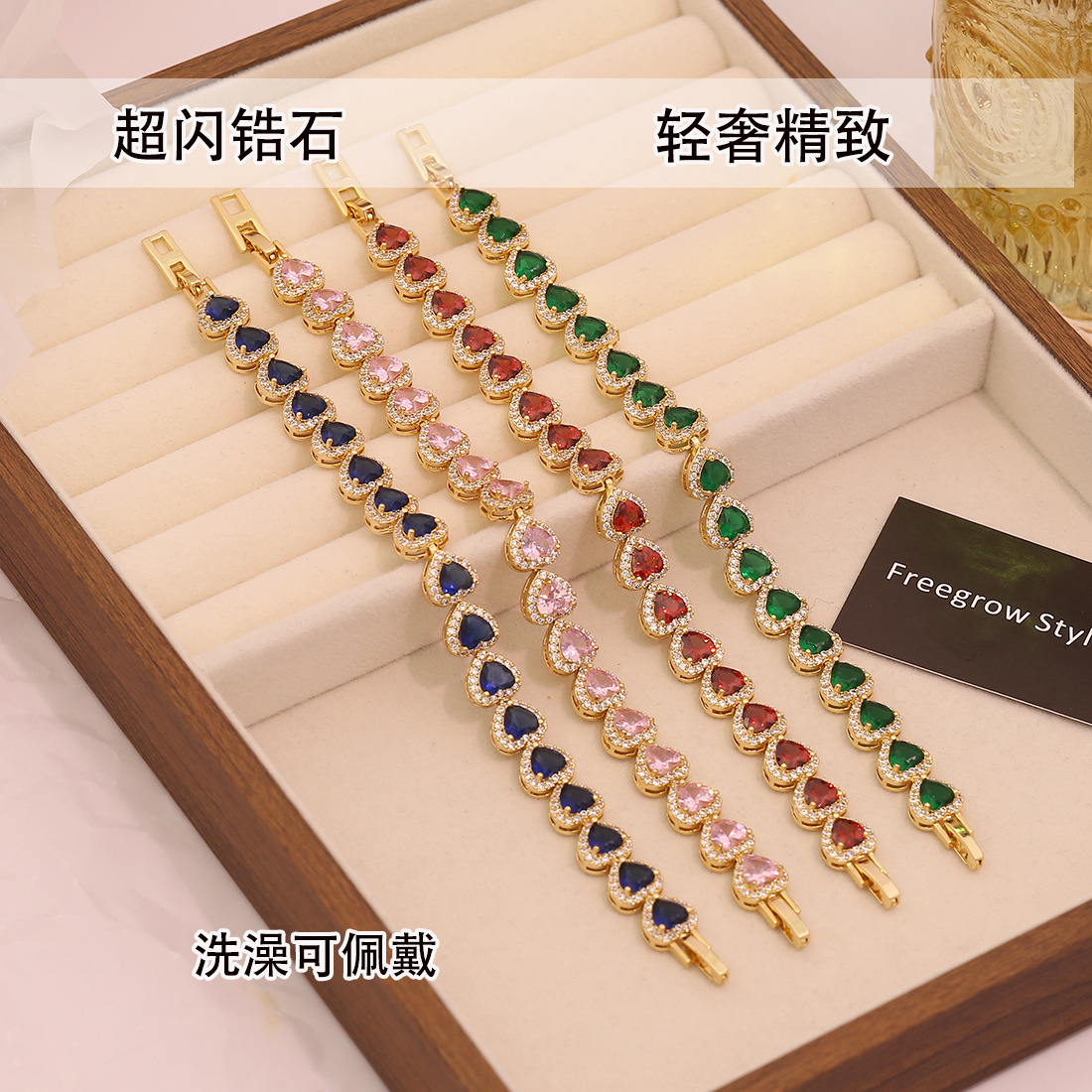 【冰萌】镶锆爱心手链轻奢镀18K手饰欧美跨境新款饰品B676