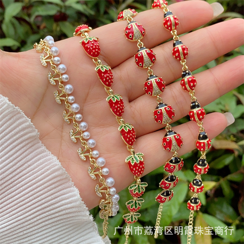 マルチスタイル銅メッキ18kゴールドかわいい風さくらんぼテントウムシブレスレットクロスボーダーオリジナル新品調節可能レディース時