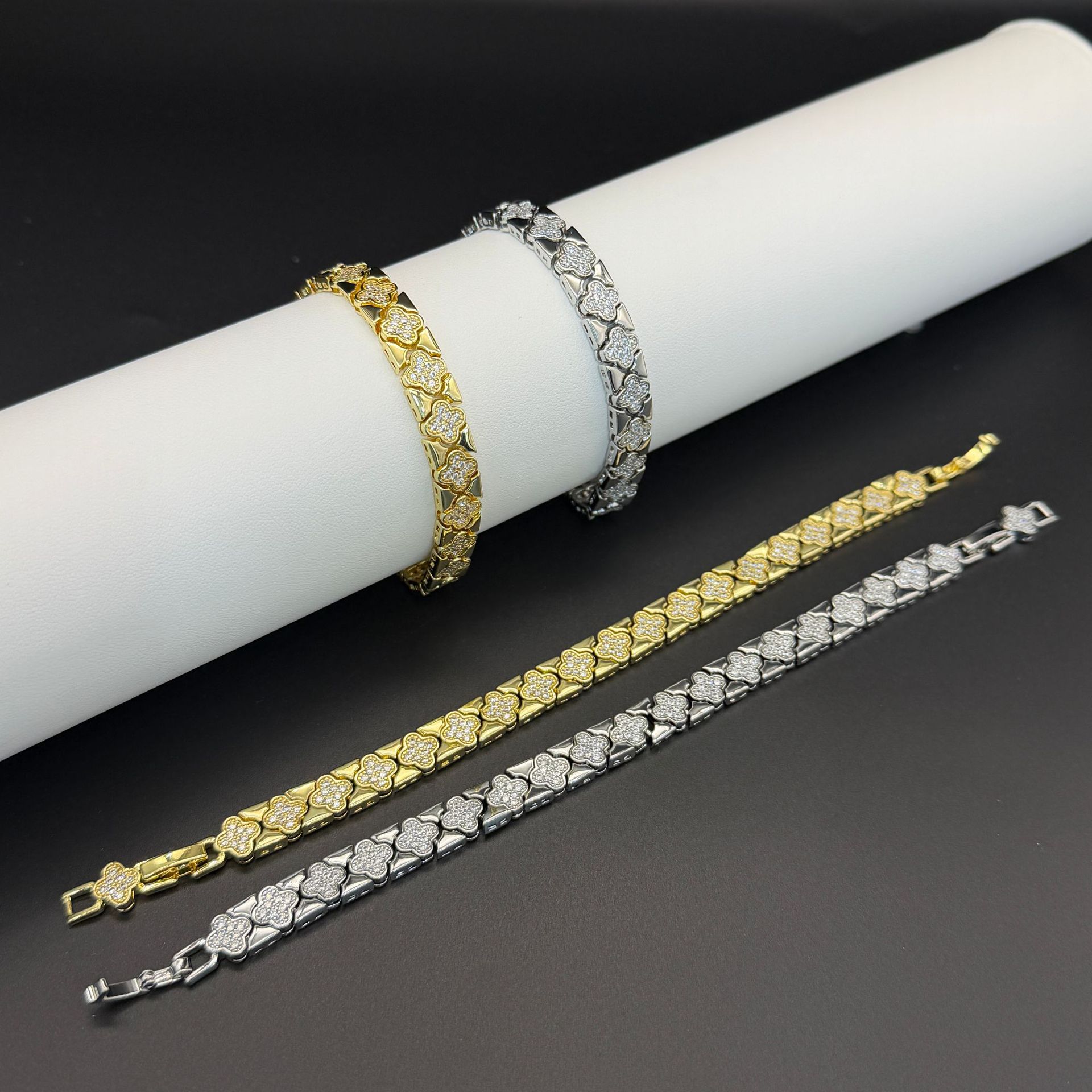 跨境热卖锆石手链女高级感时尚设计款车花手镯欧美ins风手镯女