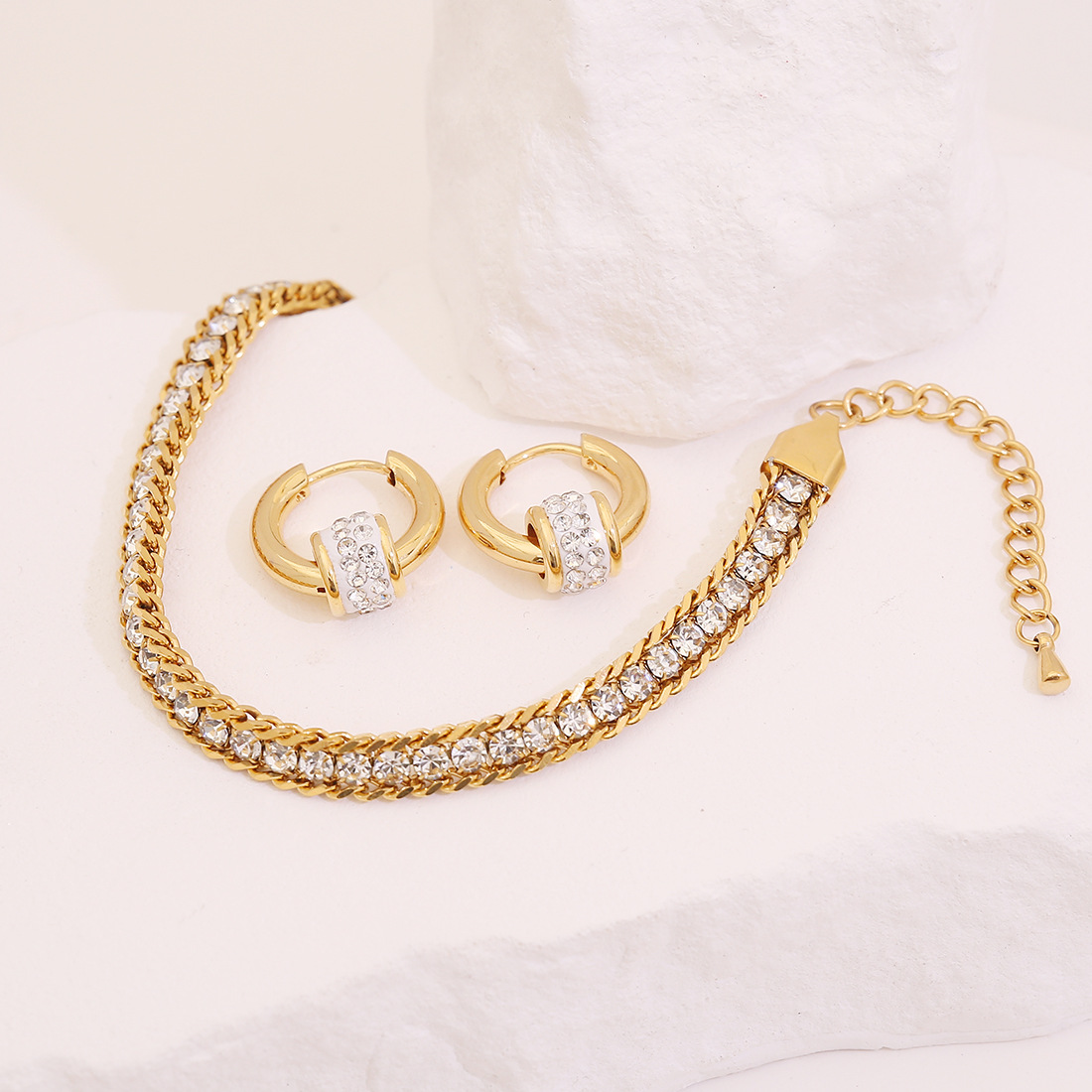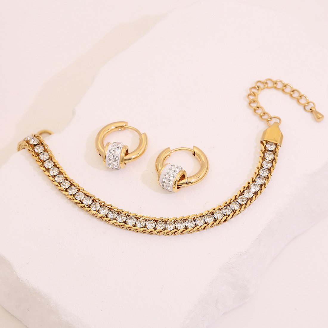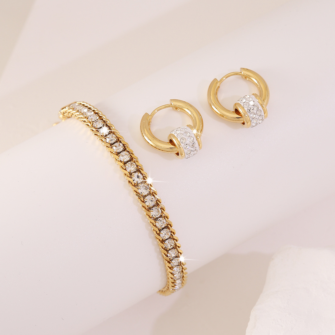 【冰萌】3对装水钻素圈耳环轻奢钛钢耳钉高级感百搭耳饰E629