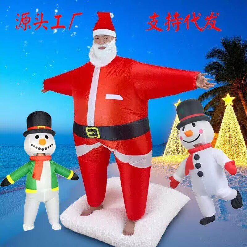 クリスマス衣装、パフォーマンス用小道具、雪だるまの着ぐるみ、インフレータブルで面白いトナカイ、クリスマスツリー、老人の衣装、鹿に乗る