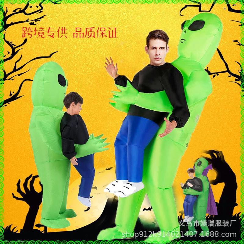 ハロウィンのコスプレ小道具、面白いグリーンゴーストの乗馬衣装、エイリアンのインフレータブル衣装を越境で専門的に供給