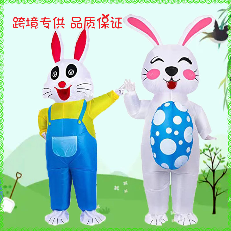 国境を越えたイースターに卵を抱いたウサギの空気入れ服祝日の家庭パーティーのお笑いアイデア歩行人形ショー服