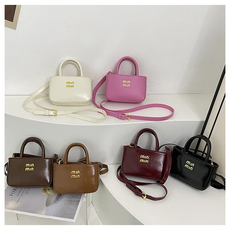 儿童包包2025新款小众荔枝纹纯色手提包锁扣肩单斜挎饺子小方包女