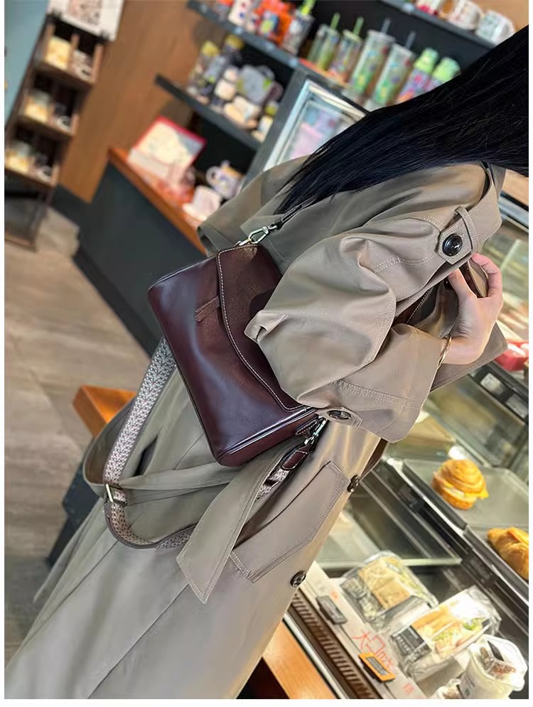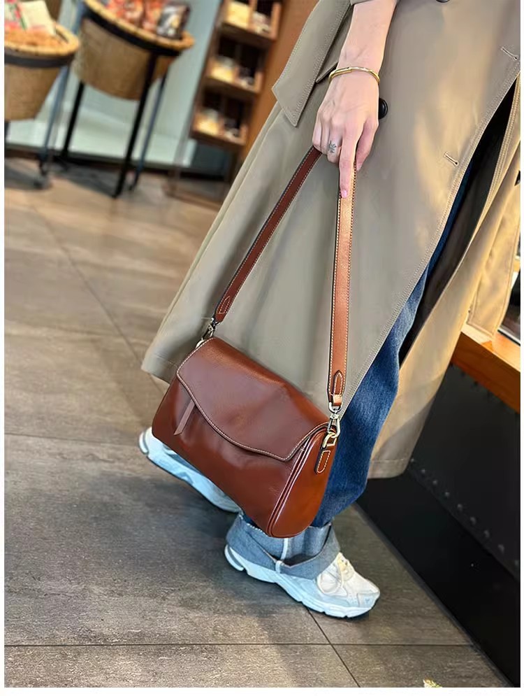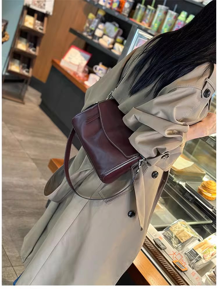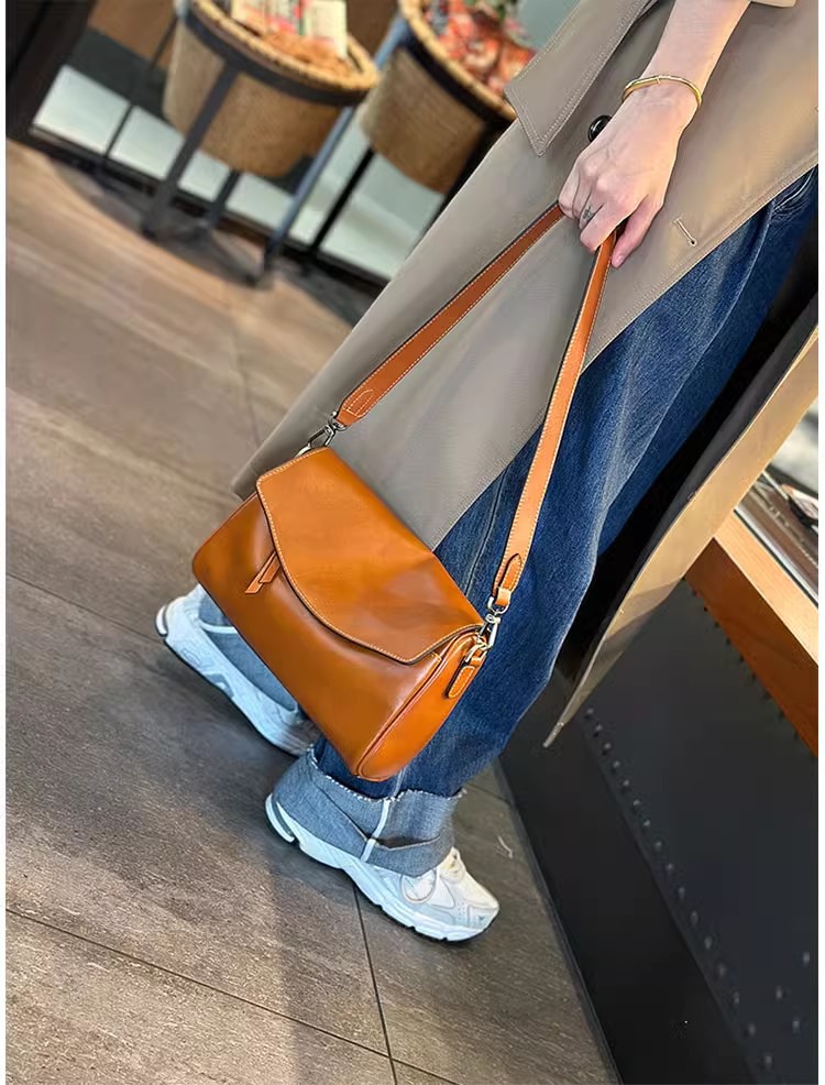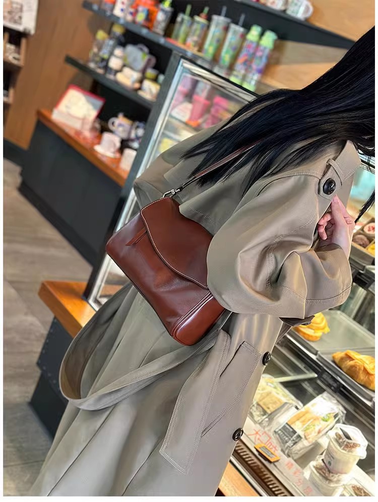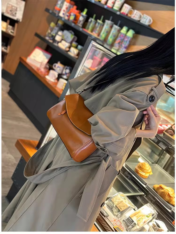 2024秋冬新作本革百合バッグトップ層牛革斜めショルダーバッグ軽やか餃子カバンシングルショルダーバッグ