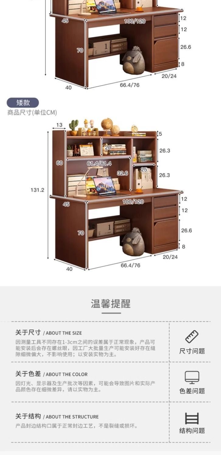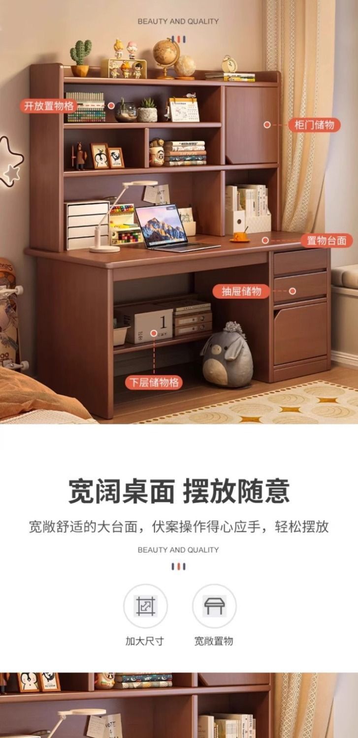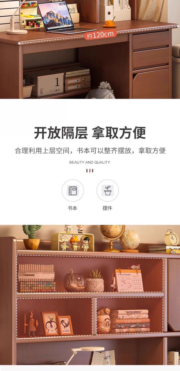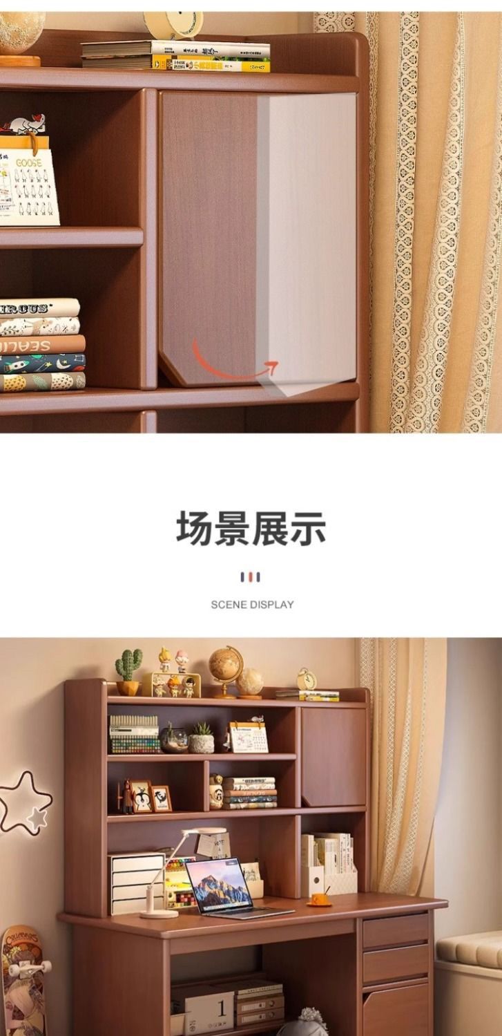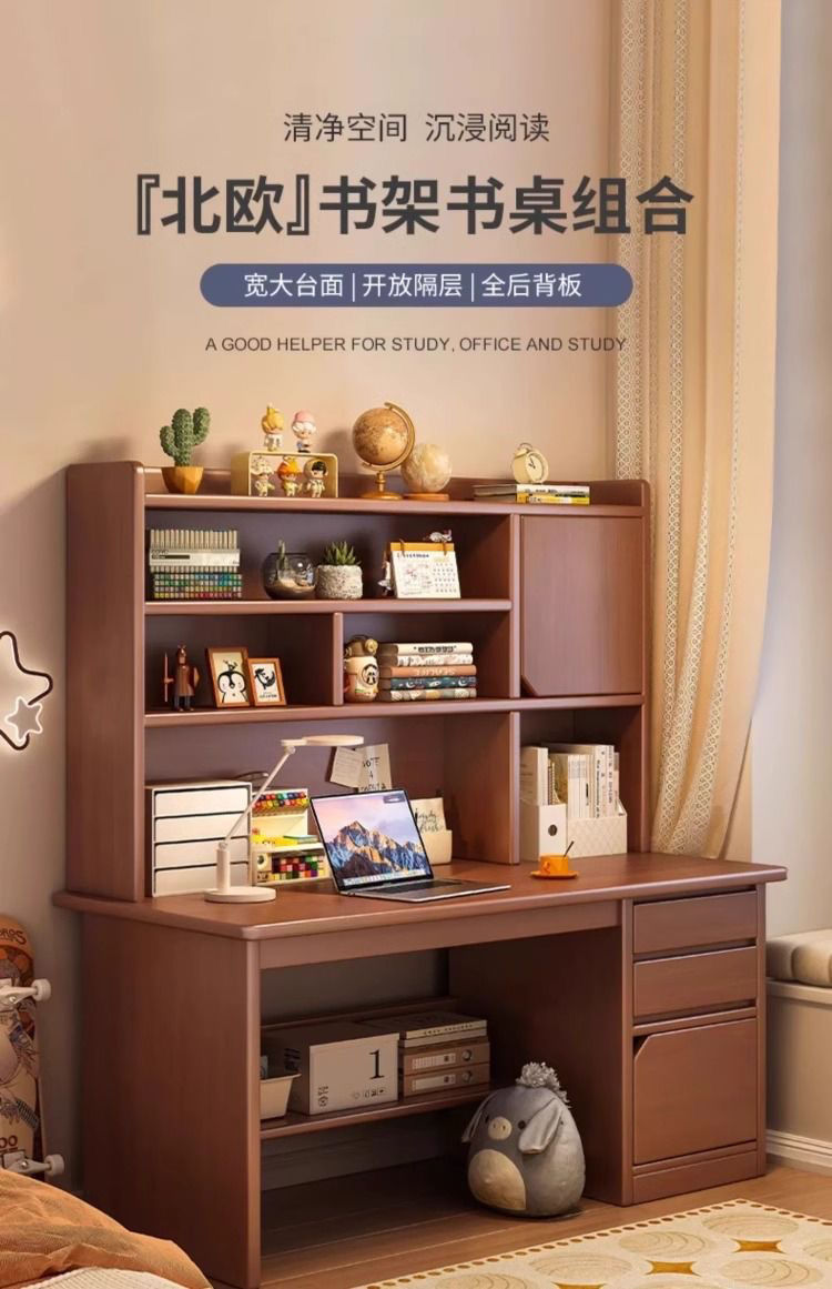 木製デスク本棚一体本棚家庭用小型コンピュータテーブル寝室学生成人学習デスク