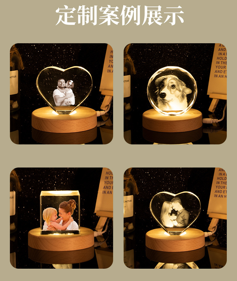 創意水晶置物内彫写真DIY図案刻字木製台座装飾プレゼントデスクトップ置物卸売り