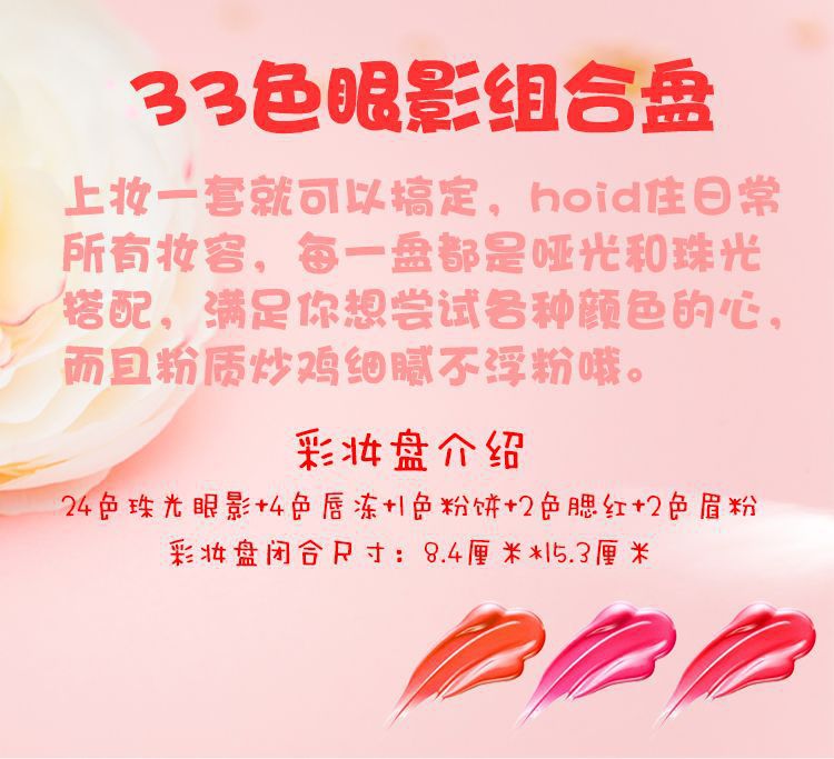 33色彩妆盘舞台妆表演粉饼腮红眼影一体盘哑光珠光亮细闪儿童演出
