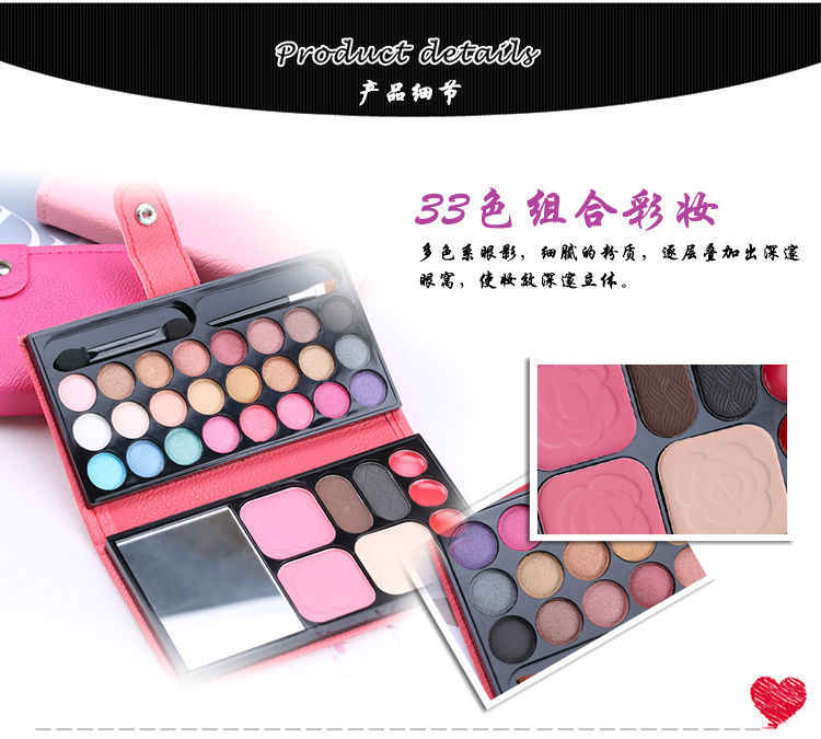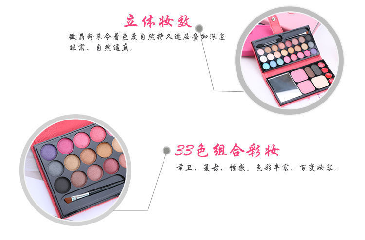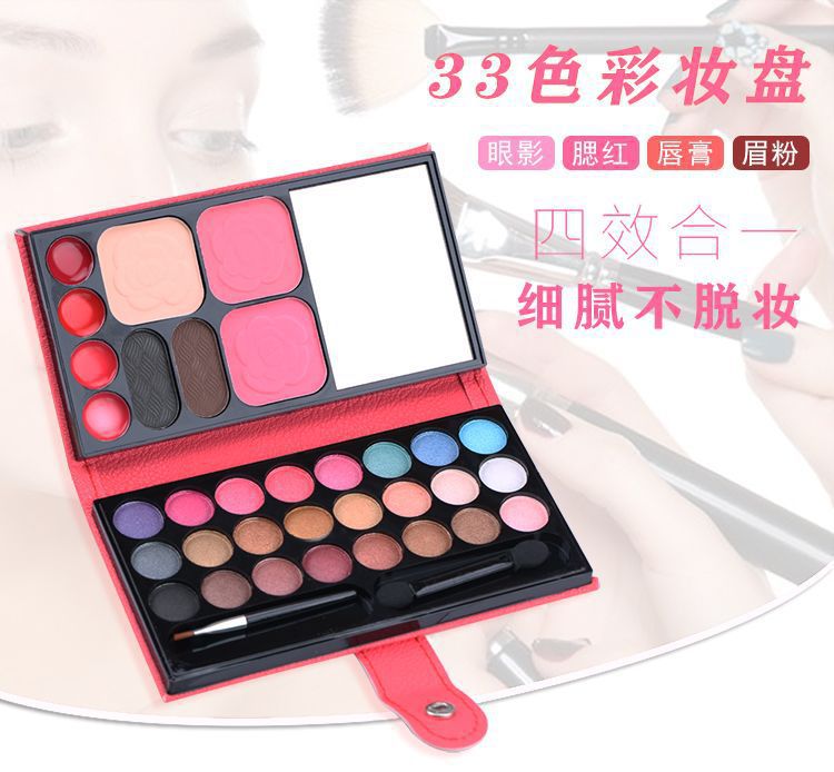 33色の化粧盤の舞台の化粧表はアイシャドーの一体盤の頬紅の唇の色の粉の餅の眉毛の粉の皮の包みのセットを演出します。