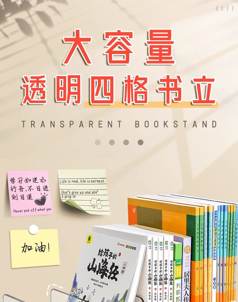 透明ブックスタンド学生デスクトップファイルラックディバイダーパネルクリップ 4 コンパートメントブックスタンド Douyin 越境貿易ドロップシッピング