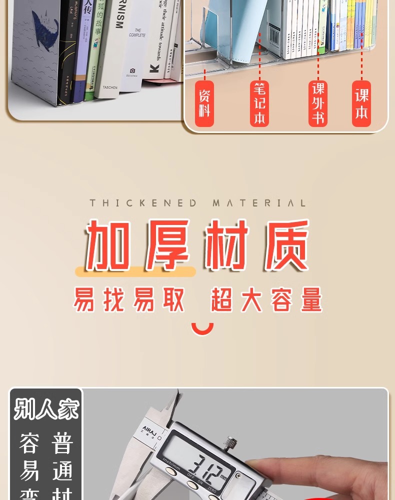本棚の読書棚の本は机の上の本棚のデスクトップを挟んで本を固定して神器の棚の仕切り板の本を収納します。