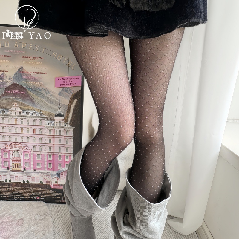 春夏の新商品のストッキングの女性の防勾糸は股の粉を落とさないで小さい菱の形の格のジャカードの底の靴下の黒ストッキング