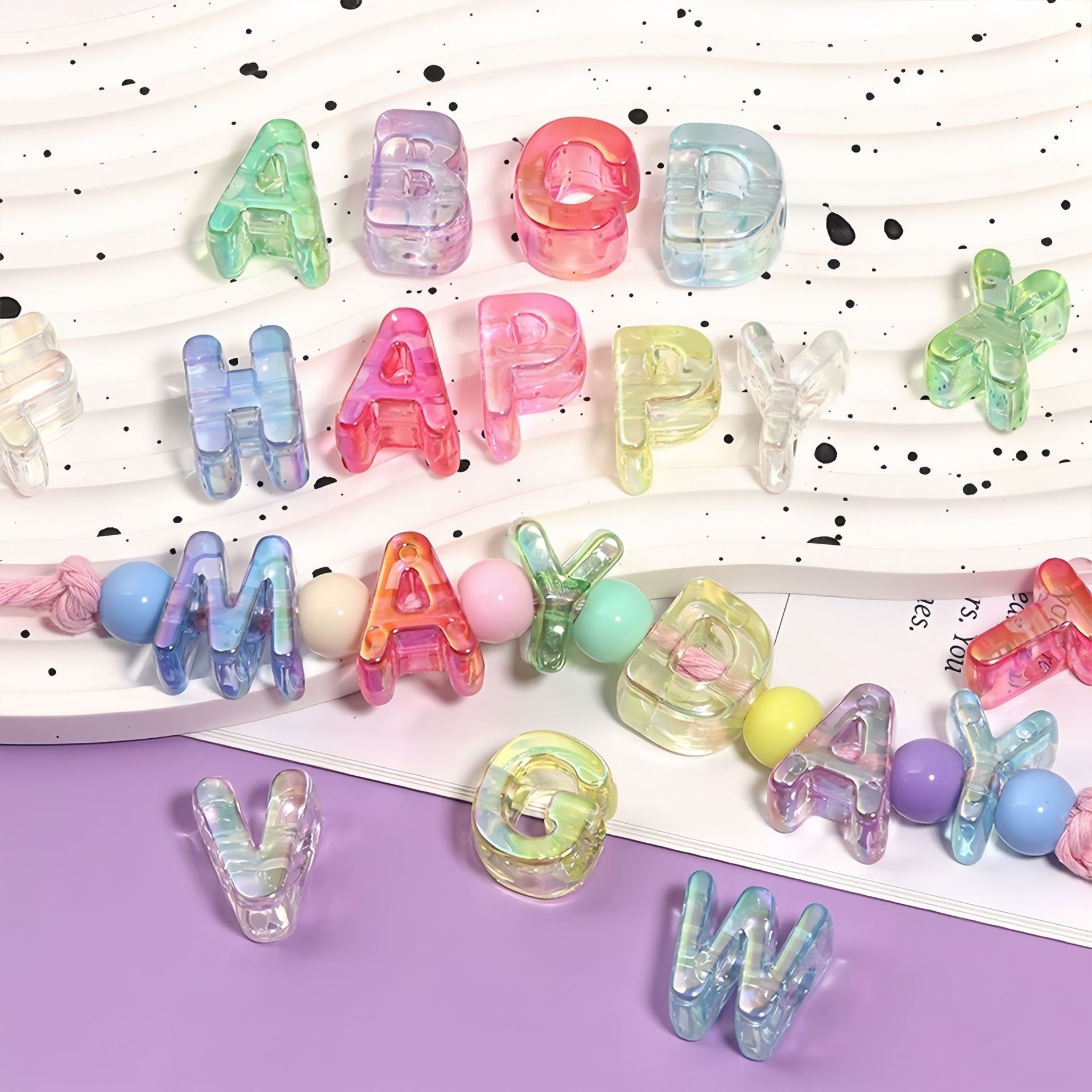 高透镀彩字母串珠diy英文透明字母珠大孔应援材料包挂件配件材料