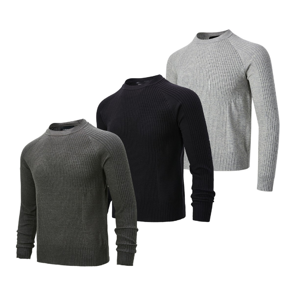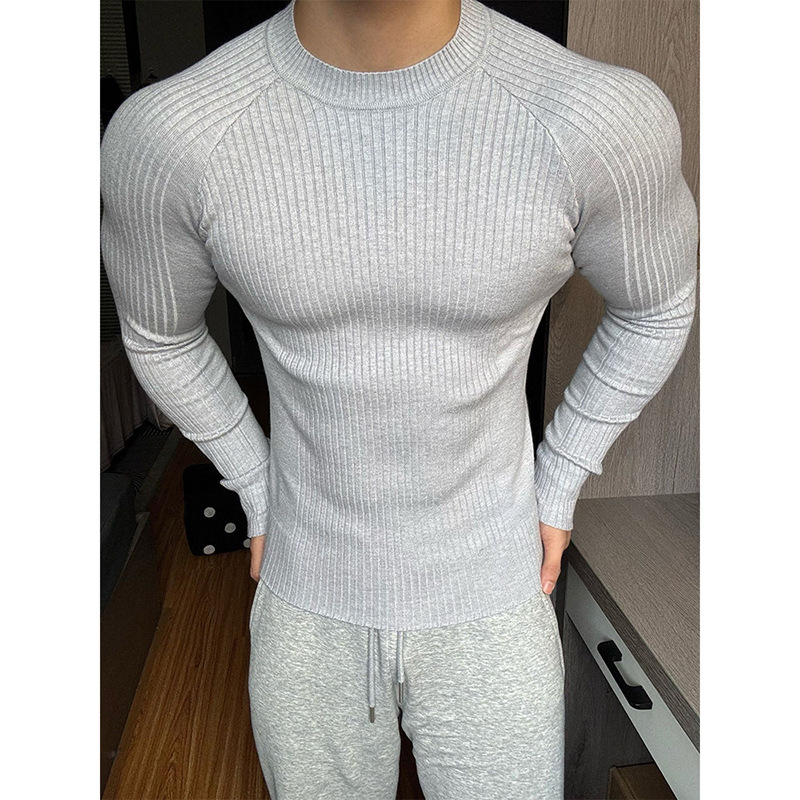 浅灰色美式圆领毛衣男冬季高级感内搭修身针织衫健身运动长袖t恤