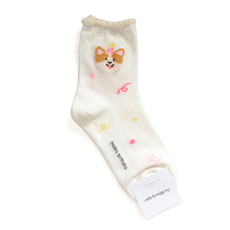韓国の靴下秋冬の中筒の靴下の女性の綿の靴下の1403動物の犬のファッションの項の学院の風の東門