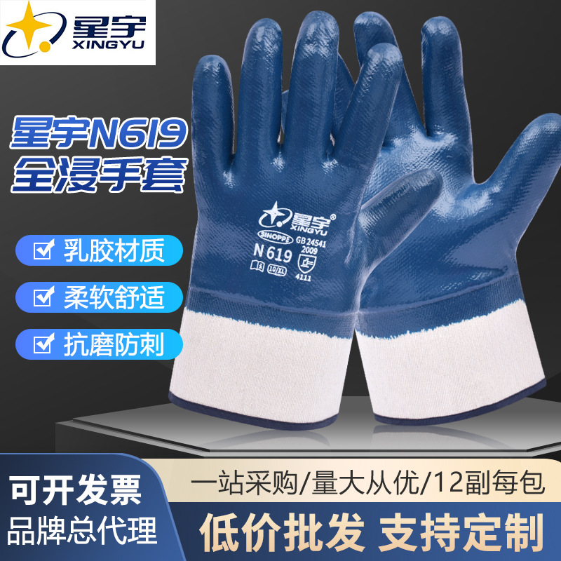星宇N619耐油性ニトリルゴム手袋を大きくして、耐摩耗性滑り止めキャンバスの接着剤塗布工業防護修理を強化します。