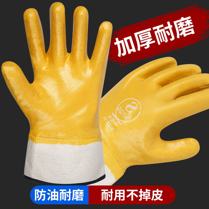 手袋耐油浸ゴム大口広口黄青ニトリルキャンバス労働保護作業滑り止め機械防油工業手袋