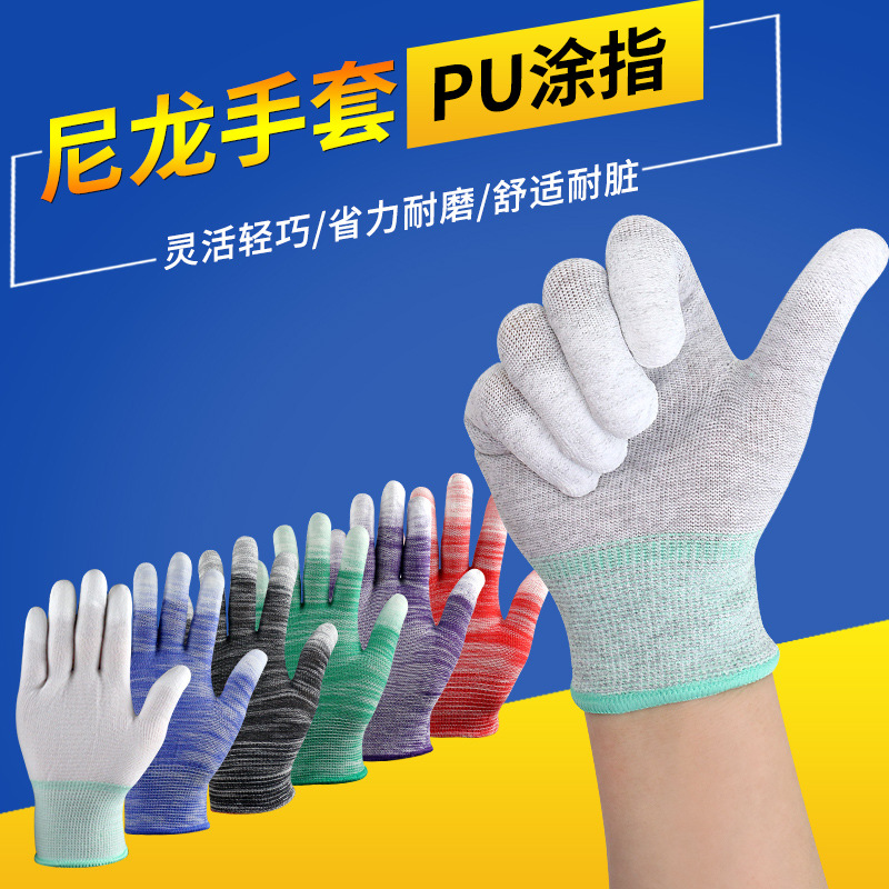 十三針ナイロンpu指塗り手袋ホワイトクリーン工場手袋電子工場保護コーティング手袋