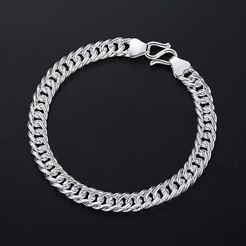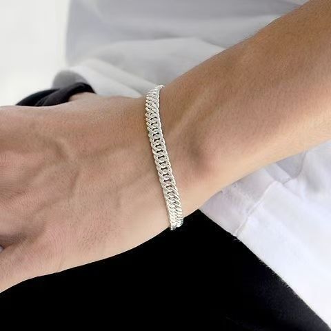 外国貿易ジュエリー、ヨーロッパ、アメリカ、日本、韓国、キューバ、サイドメンズシルバーメッキブレスレット、工場直送、Douyin Xiaohongshuと同じスタイル