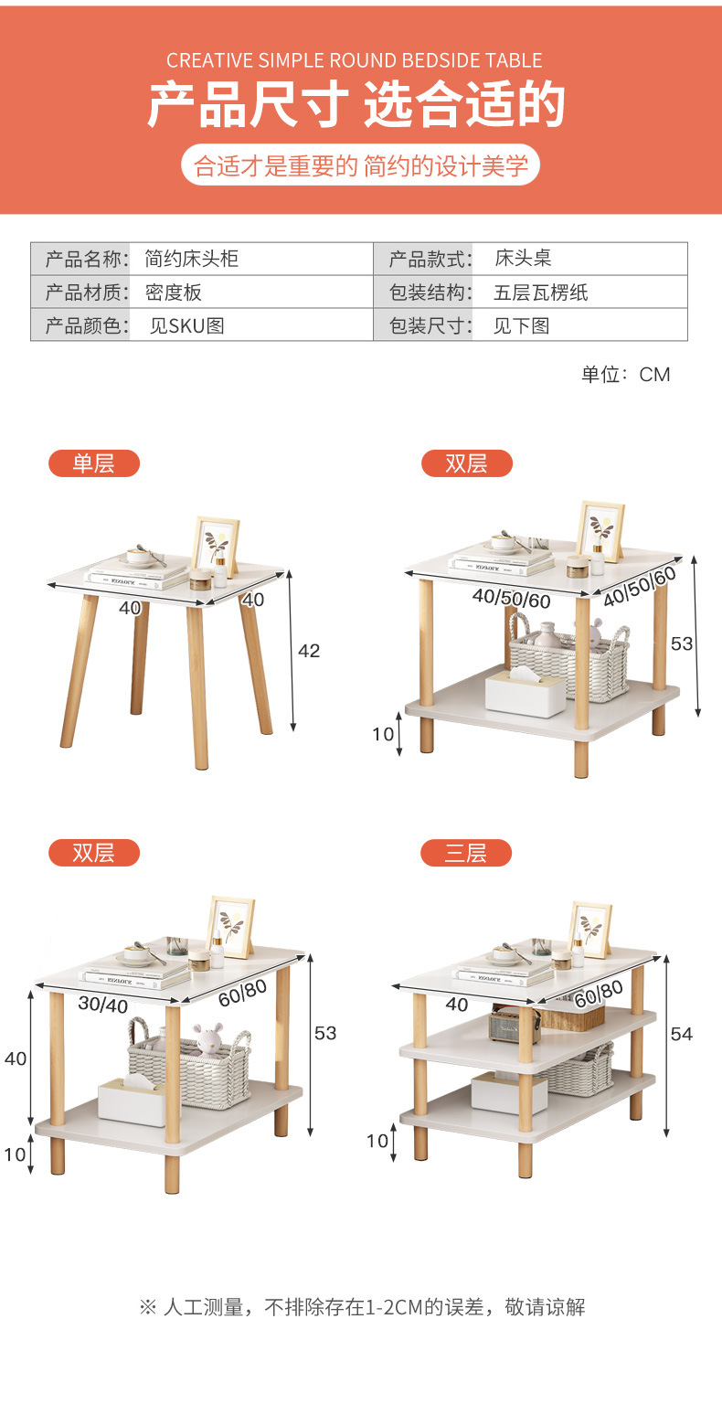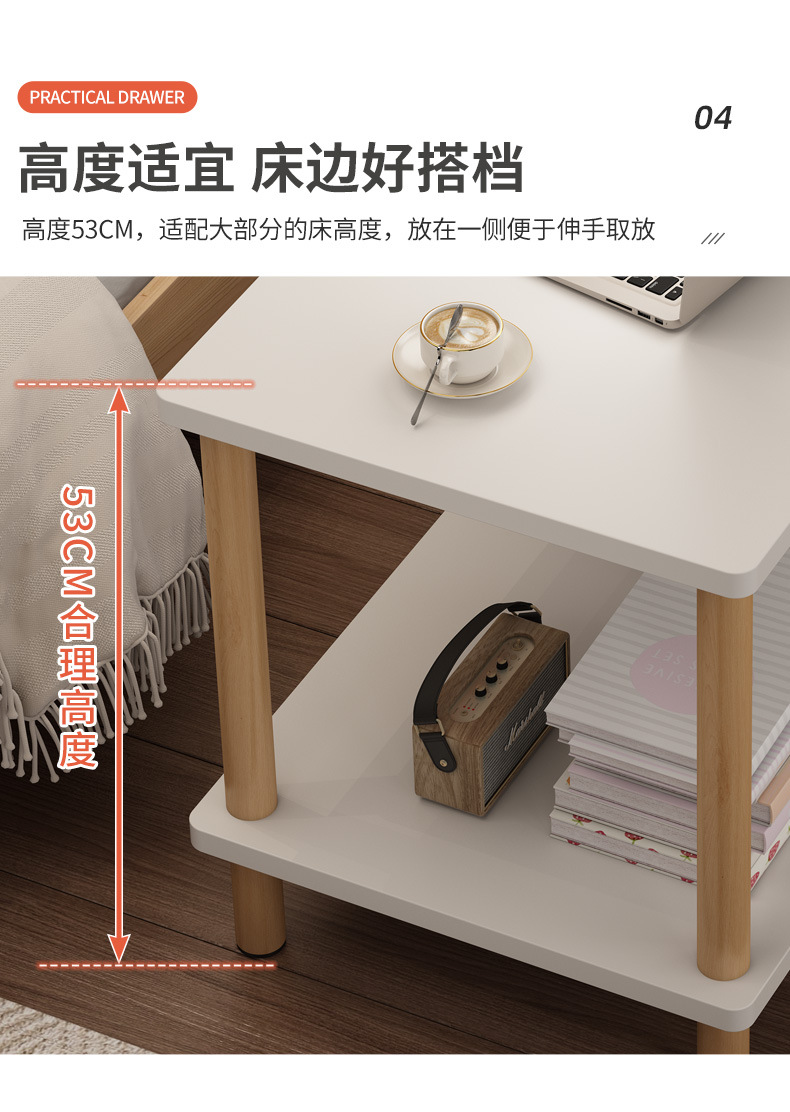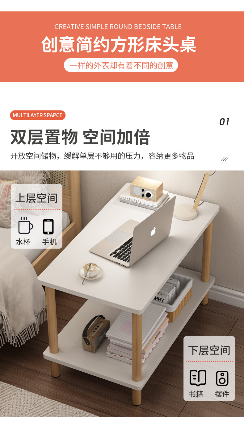 ベッドサイドテーブルシンプルモダン木製脚ロッカー小型簡易寝室家庭用2024新型ベッドサイド棚