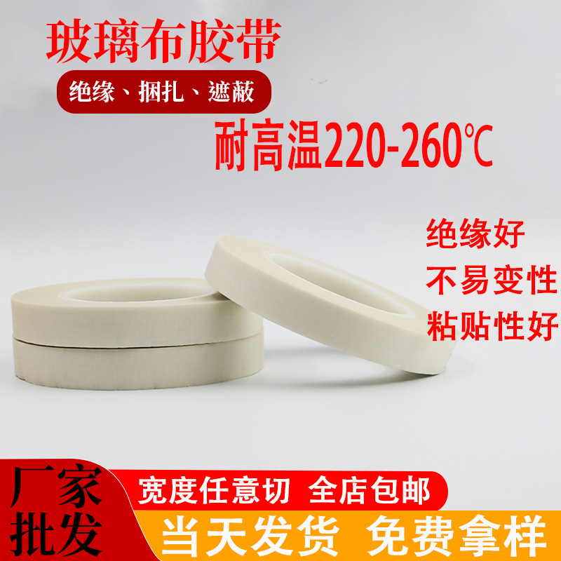 送料無料白高粘度ガラス布テープ片面耐火高温耐性モーターモーター絶縁ガラス繊維テープ