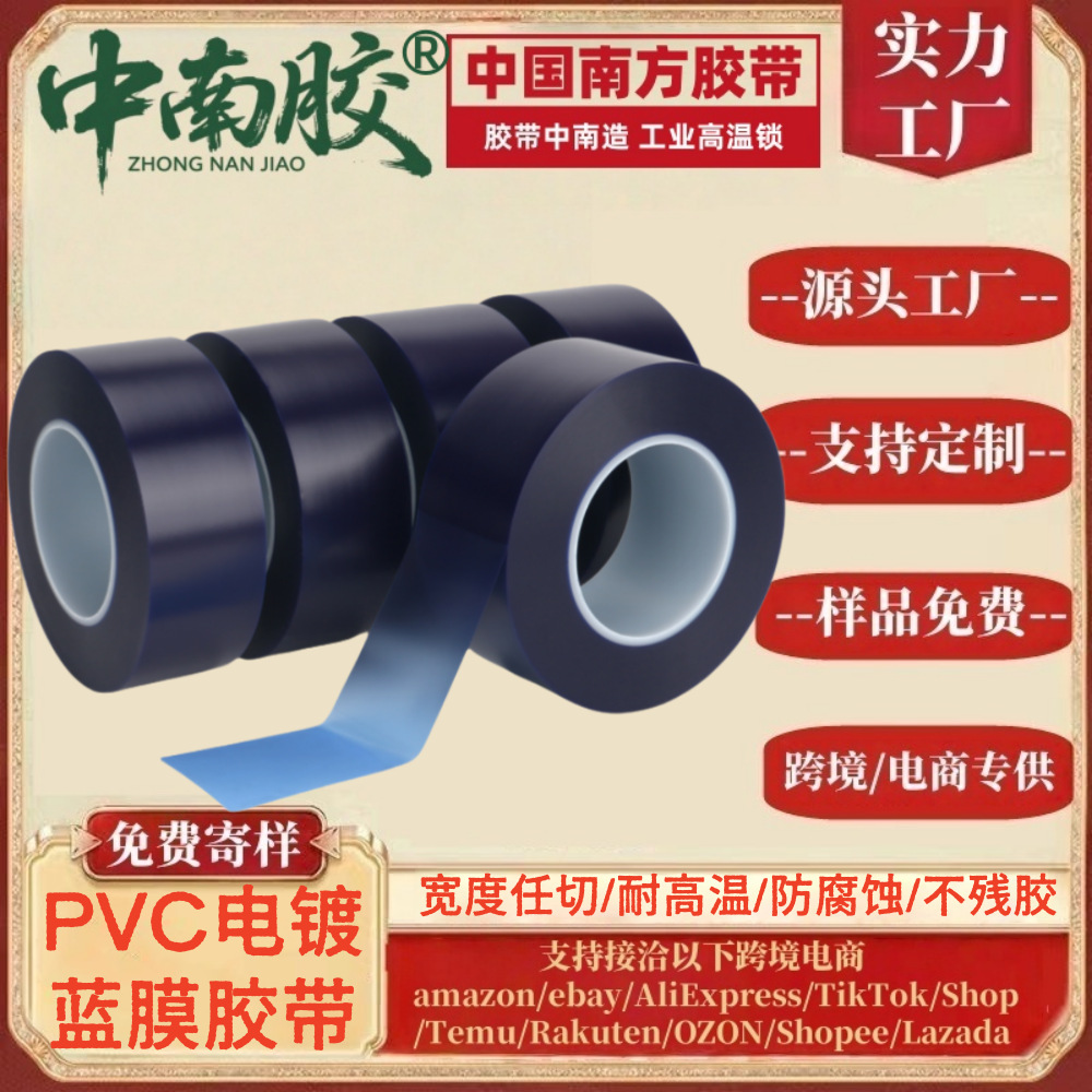 中南胶PVC电镀蓝膜胶带明蓝膜耐高温耐酸碱抗腐蚀绝缘遮蔽抗溶
