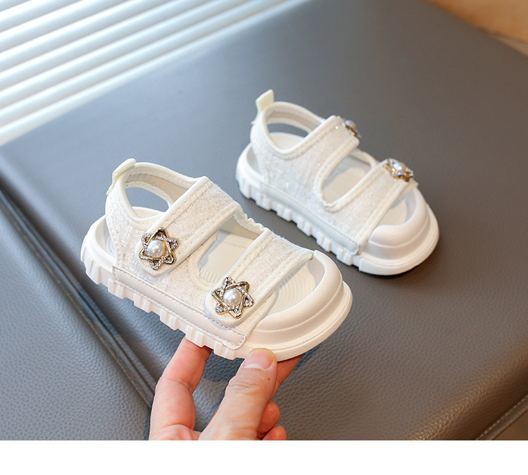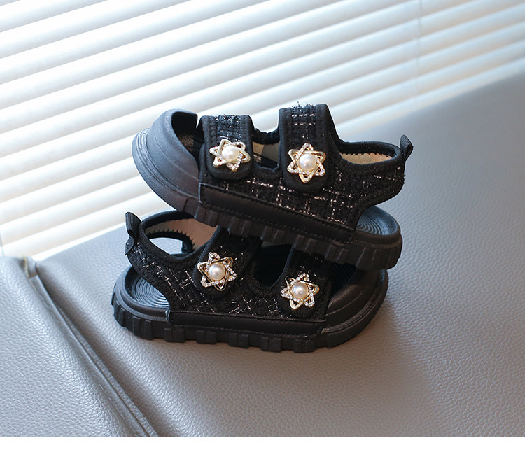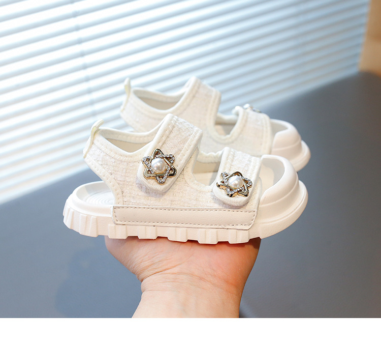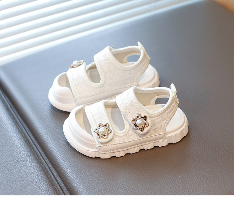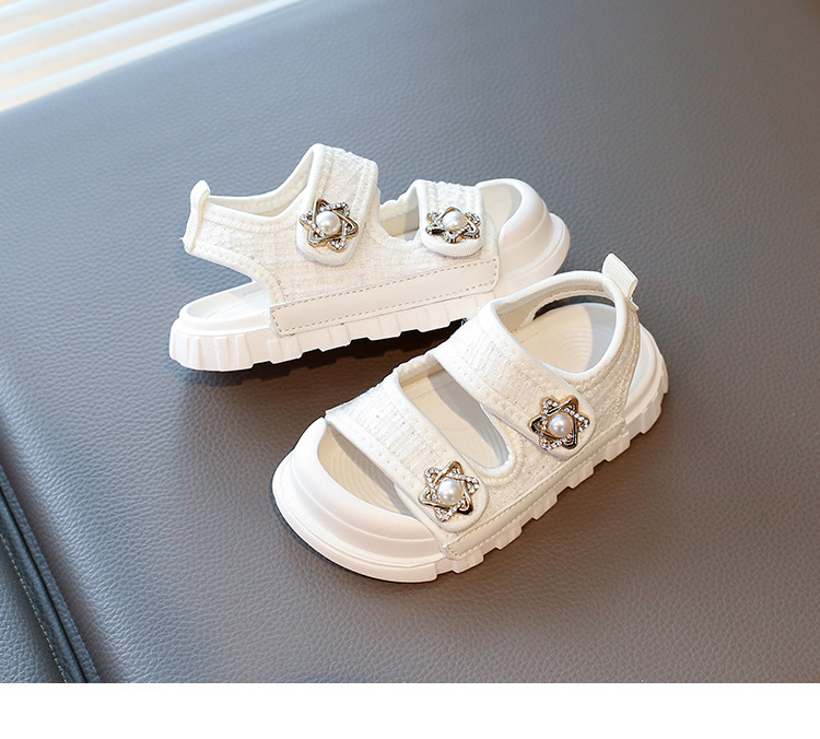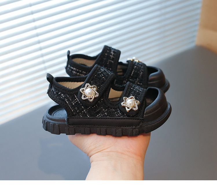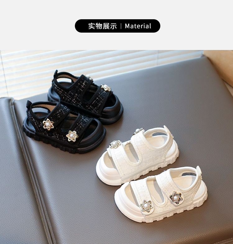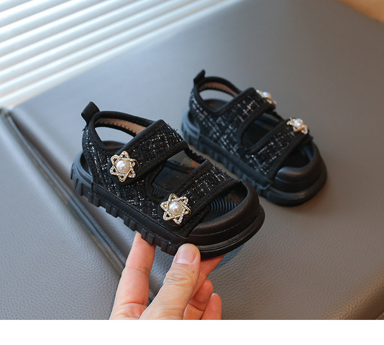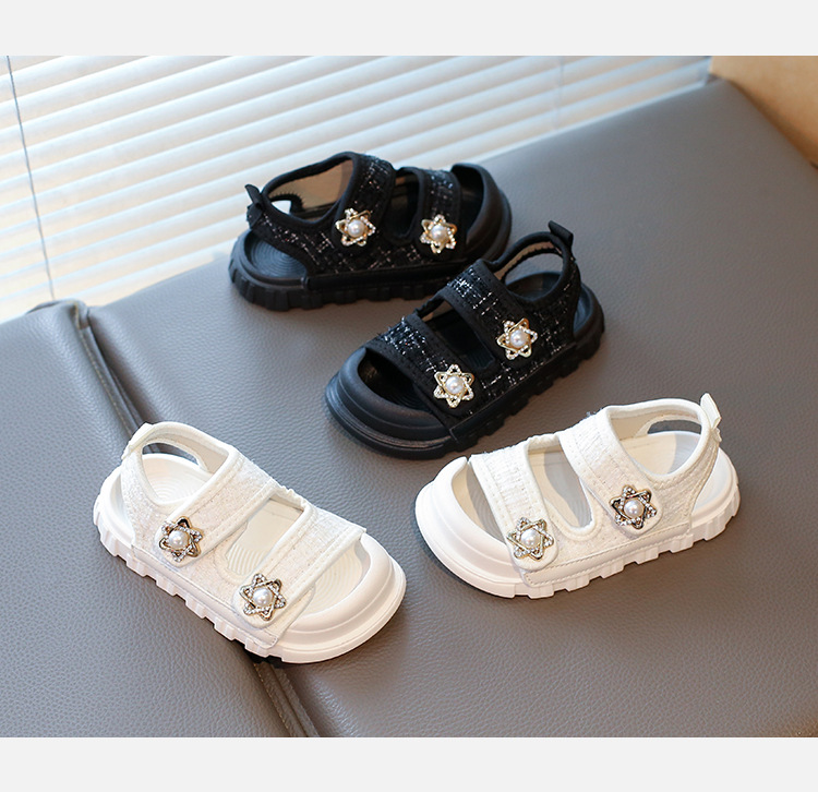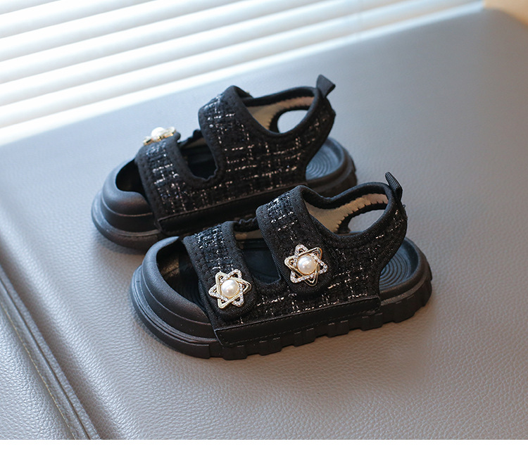 2025夏の新型の女の子の小さい香風のサンダルの韓国版の通気性の赤ちゃんの半包頭の砂浜の靴の小さい女の子の対外貿易