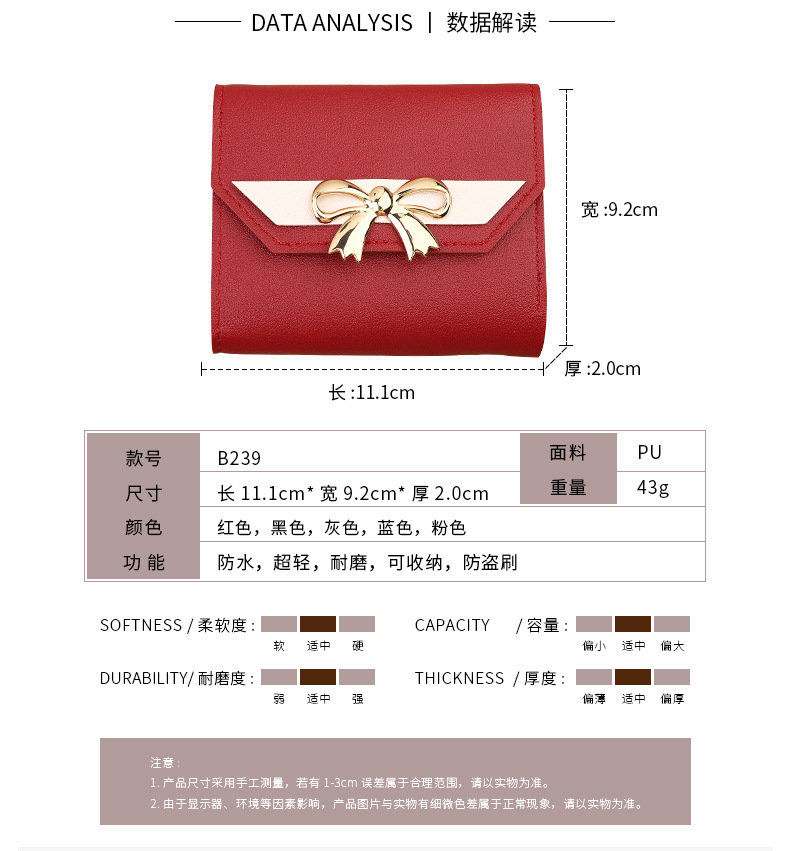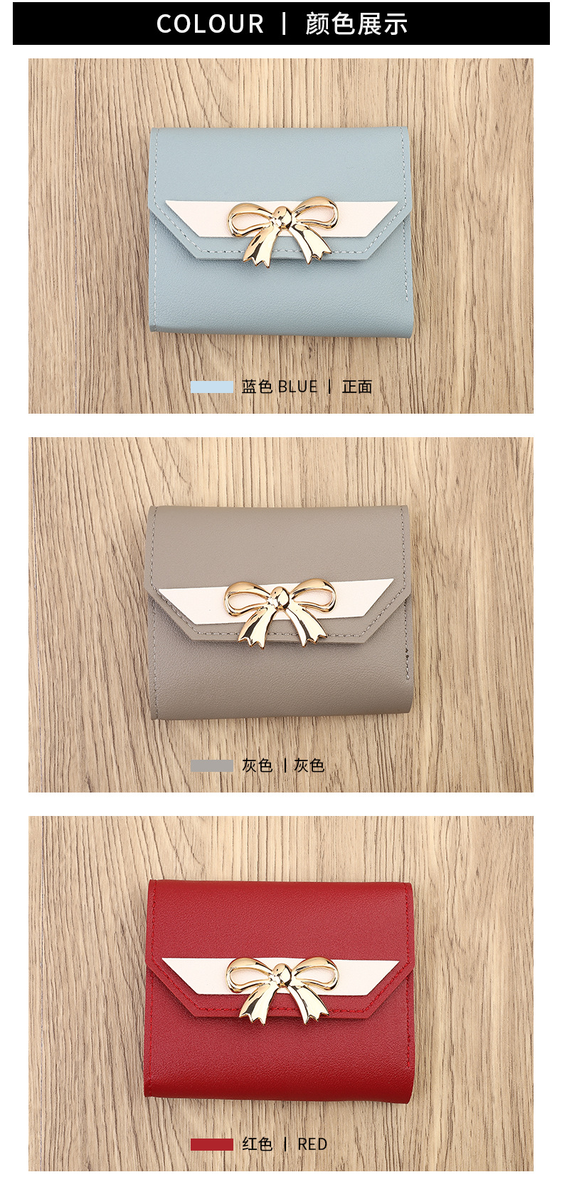 クロスボーダー日韓ins風ファッション小銭入れレディース蝶結びミニ財布三つ折りショート小銭入れカバン