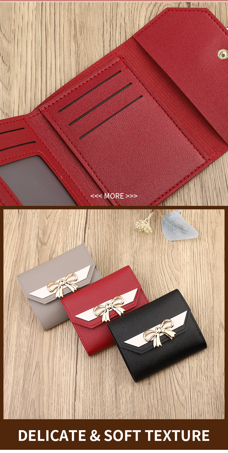 クロスボーダー女性バッグ2024Bags蝶結びショートタイプ三つ折り磁気バックルレディース財布ミニ安い小さなバッグ