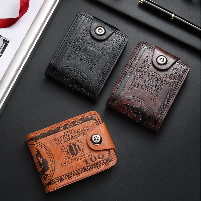 跨境爆款男士钱包美金图案爆款超轻PU包包多功能复古多卡位厂家
