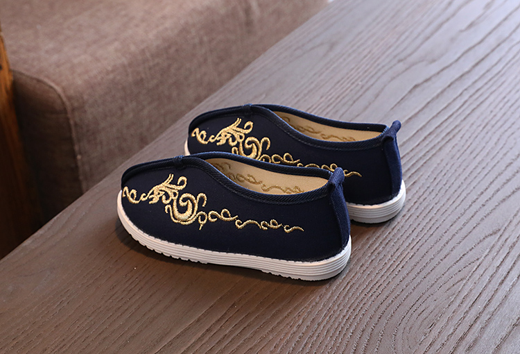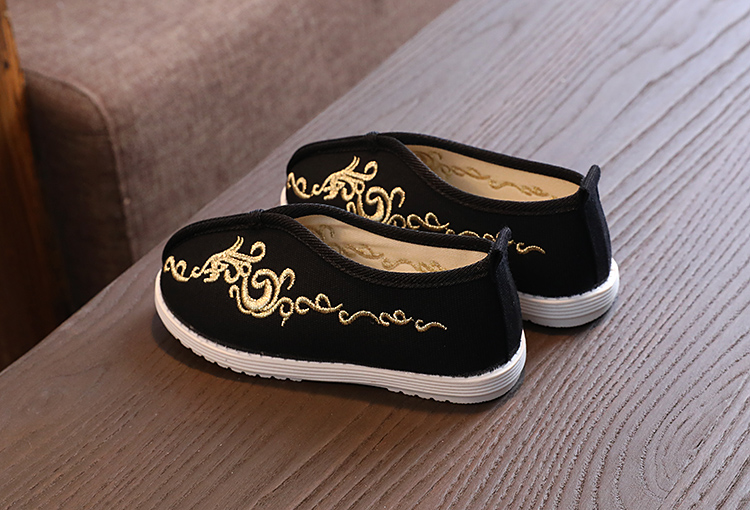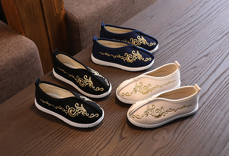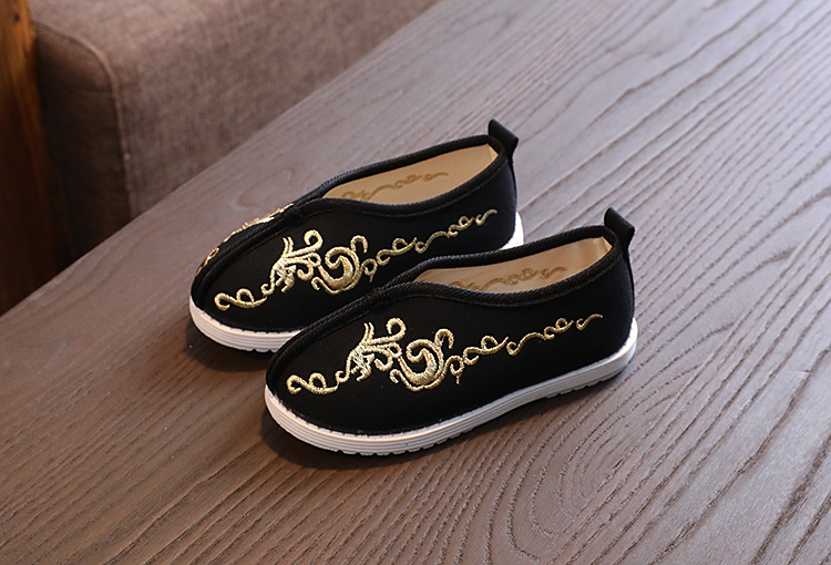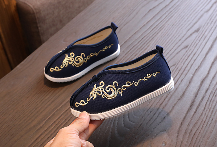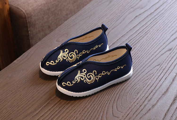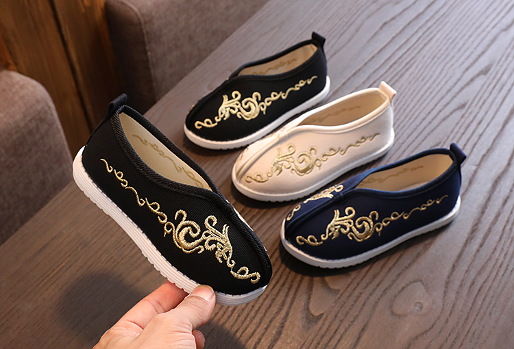 春秋新型男児漢服靴民族風子供刺繍靴老北京女児布靴幼児表演出靴