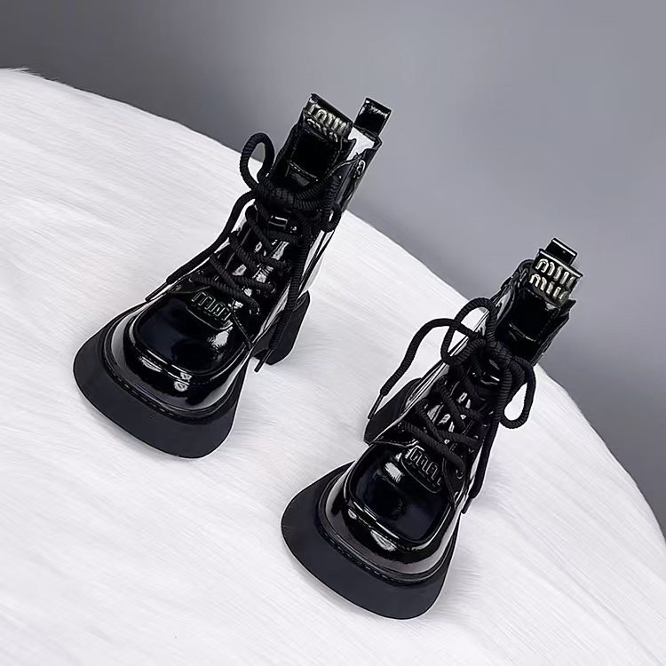 本革のマーティンブーツの女性2025秋冬の新型の英倫風のファッションの厚い底のネットの赤い爆発の爆発の街のショートブーツの女性