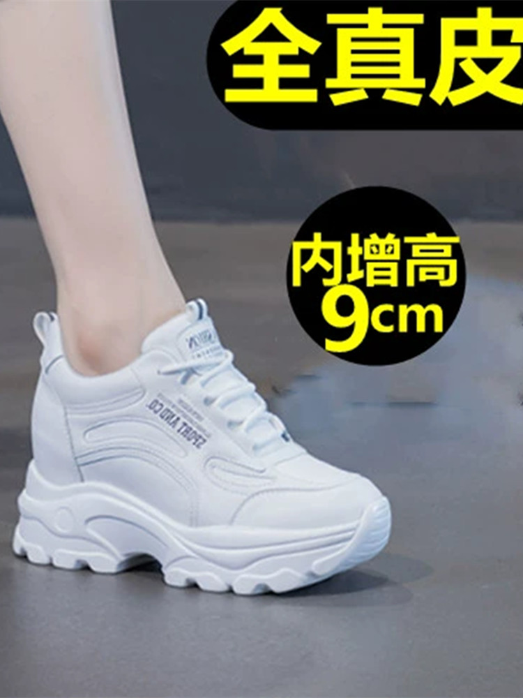 本革の純白のお父さんの靴の中で9cmの頭の層の牛革のレジャーの運動靴の柔らかい底の軽やかな観光靴の女性を高めます。