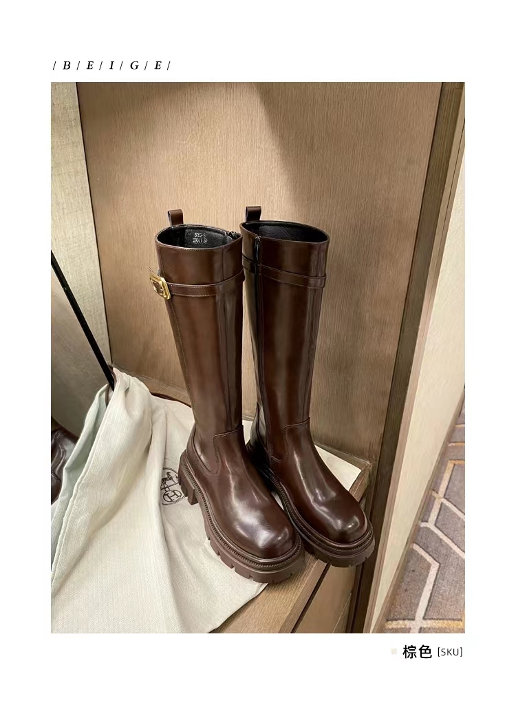 2025新型本革ショートブーツ女性太ヒール女性ブーツ秋冬マーティンブーツ女性白痩せブーツ