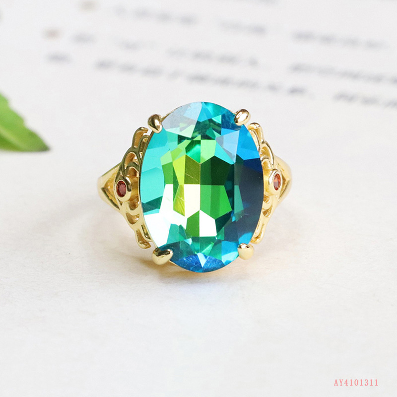 愛钰クロスボーダー熱売瑠璃指輪フラッシュ活口ガラス指輪復古アクセサリー卸売りAY4101311