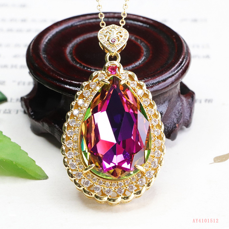 愛钰復古風三色ガラスペンダント模造宝石ネックレス快手振音生放送卸売りAY5010905L
