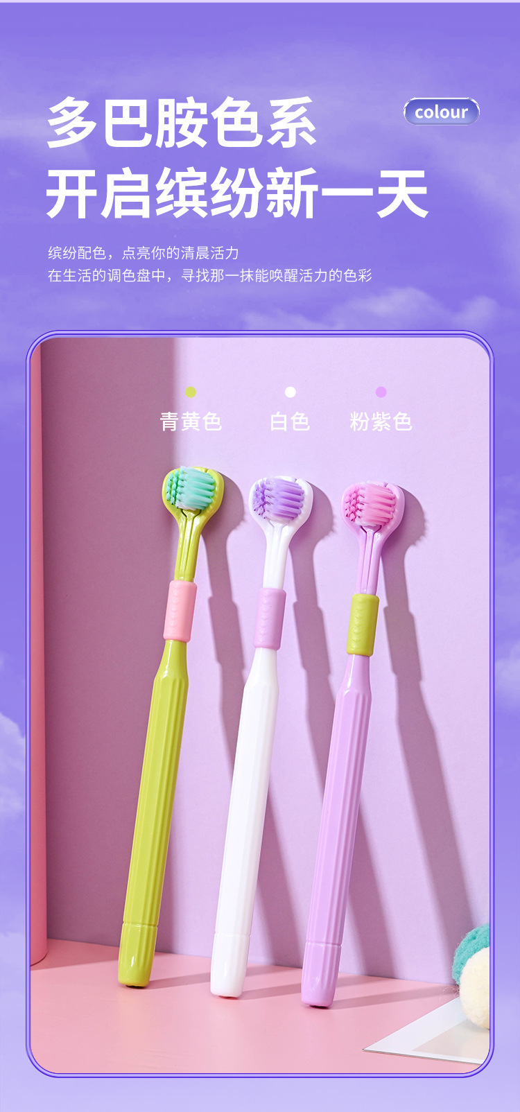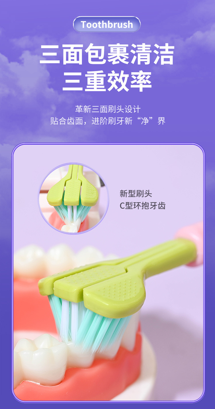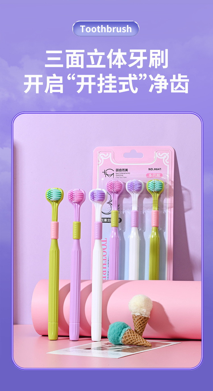 ディザトーン新品三面歯ブラシ少女マカロン清潔軟毛保護歯成人歯ブラシ