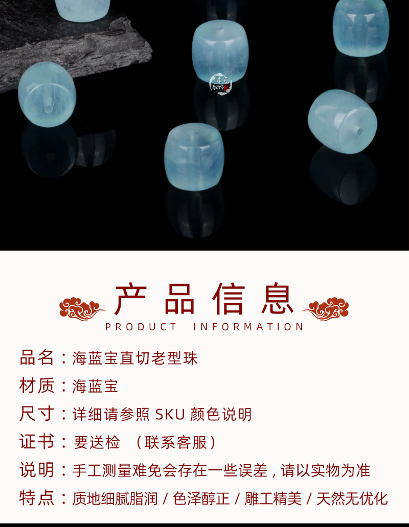 天然海藍宝直切老型珠散珠隔珠手作りdiy水晶ブレスレットネックレス多宝手串部品