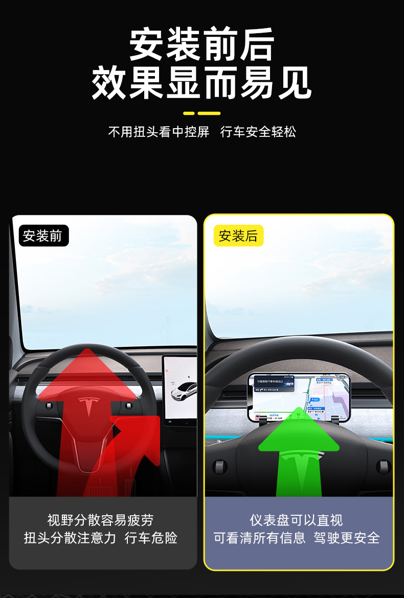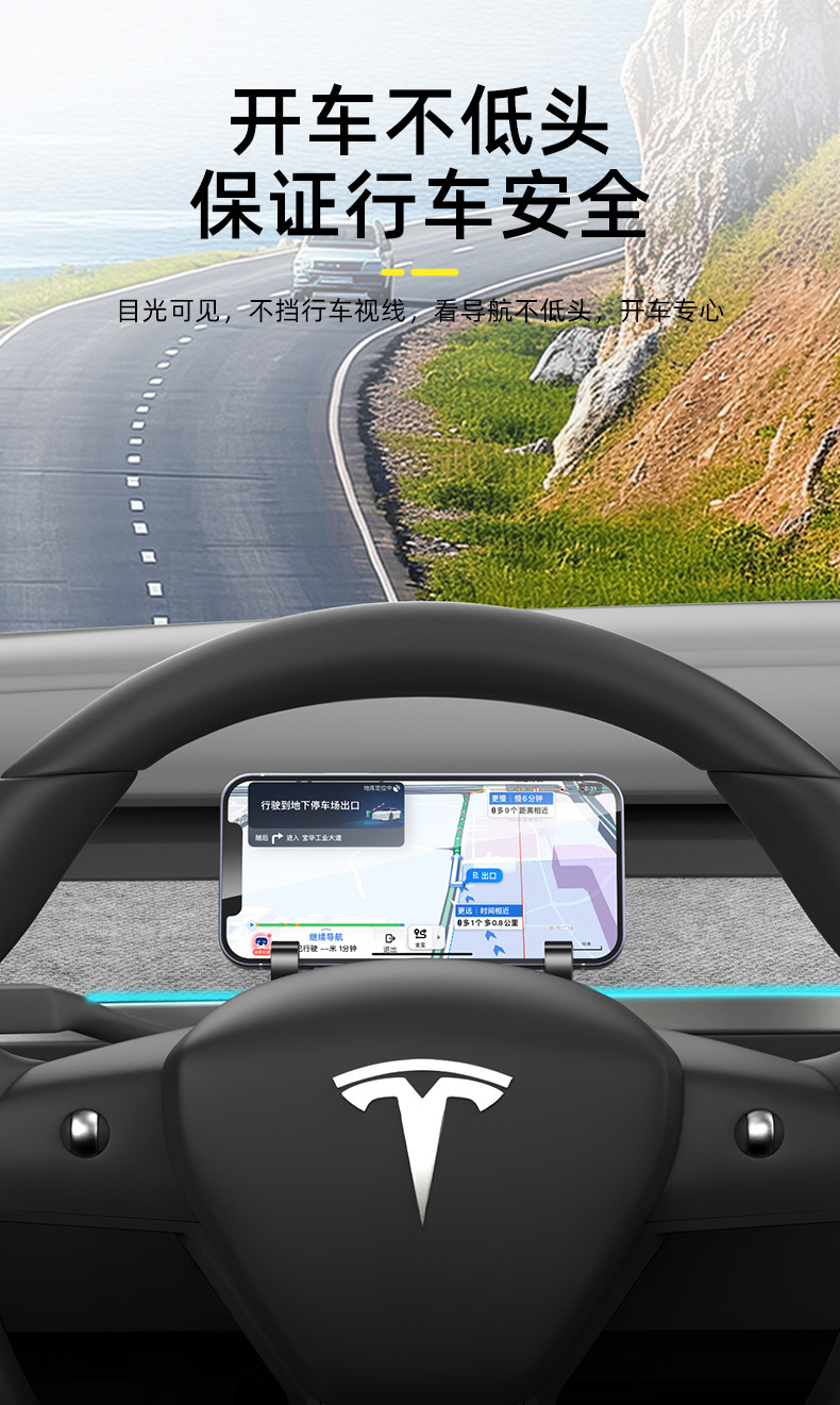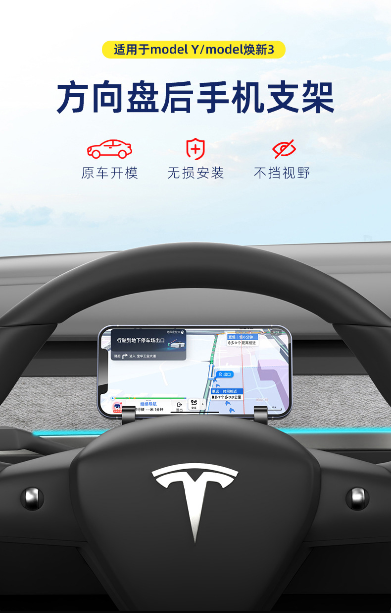 テスラモデル3/Y/YLに適したステアリングホイール用携帯電話ホルダー、メガネケース、車載ナビゲーションブラケット、収納