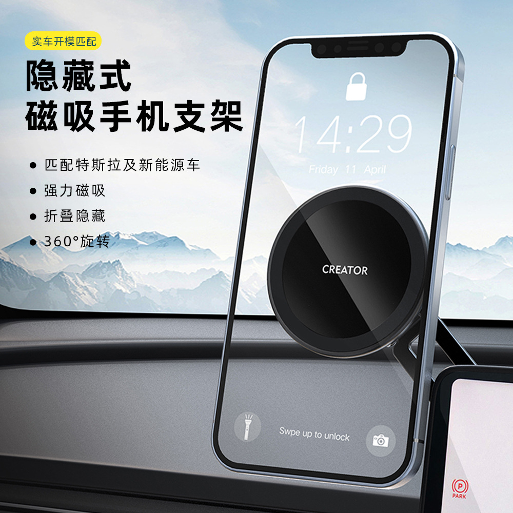 テスラ熙新model 3/Yマグネット携帯電話の車載スタンドを適用してスクリーンを折り畳み、ナビゲーションスタンドを隠す