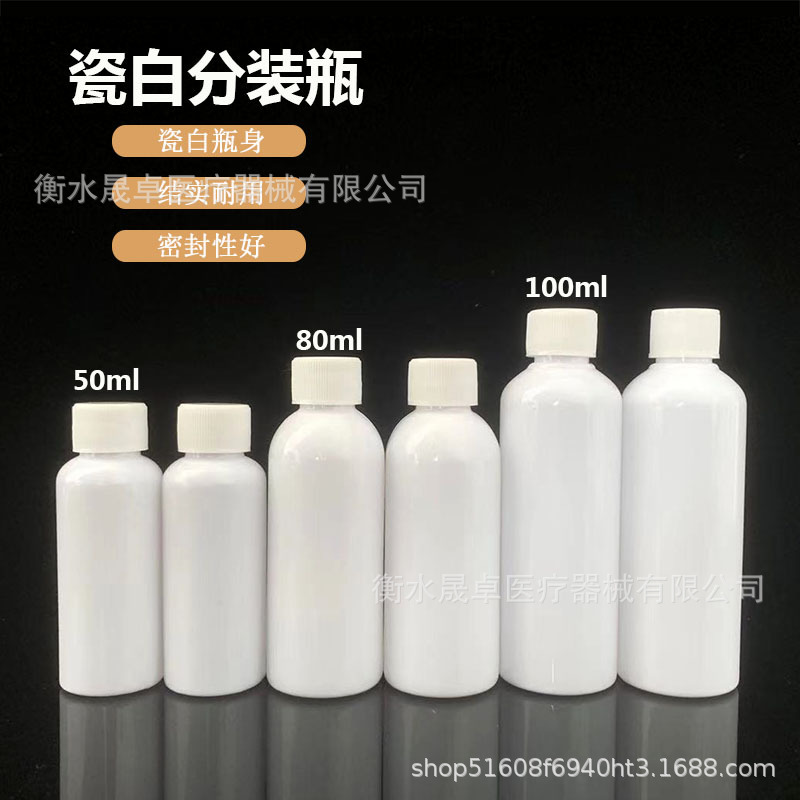現物50/100ml磁器白ペットボトル小口細長密封瓶液体サンプル遮光分注瓶