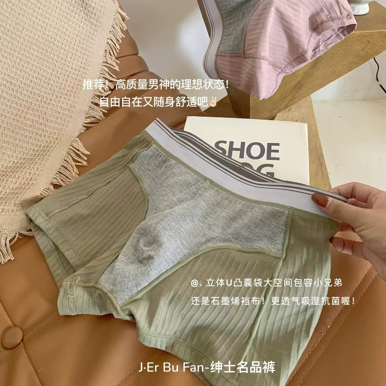 純綿メンズ下着 秋冬用 グラフェンクロッチ ユース向け 四角パンツ 通気性 ミッドウエスト ボクサーパンツ トレンドブランド