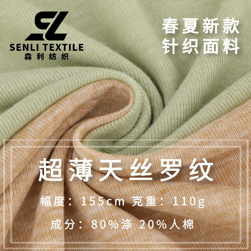110グラム天糸超薄リブ生地春夏軽薄通気柔らかいtシャツ日焼け止めエアコン上着生地