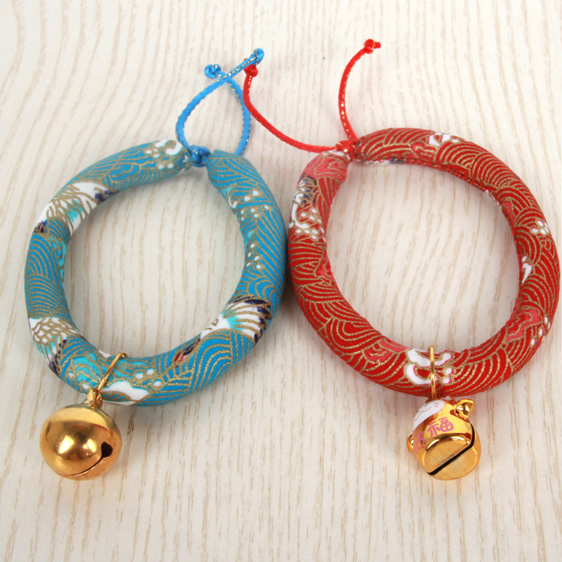 和風手作りペット猫鈴犬ペット首輪ネックレス用品アクセサリー中小型調節可能