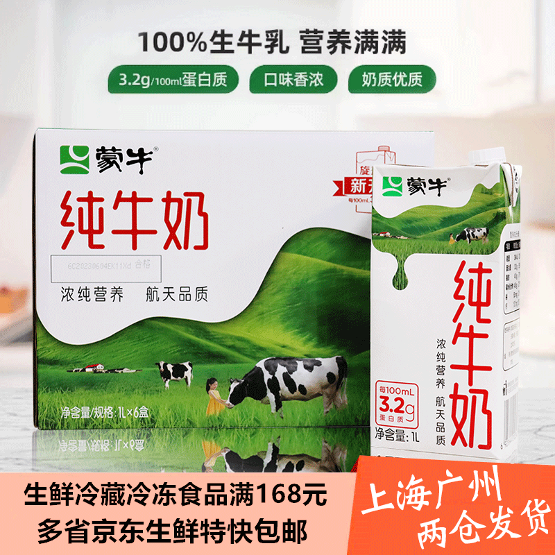 蒙牛全脂純牛乳全脂滅菌乳1L * 12箱宇宙版家庭児童朝食ミルク焙煎専用