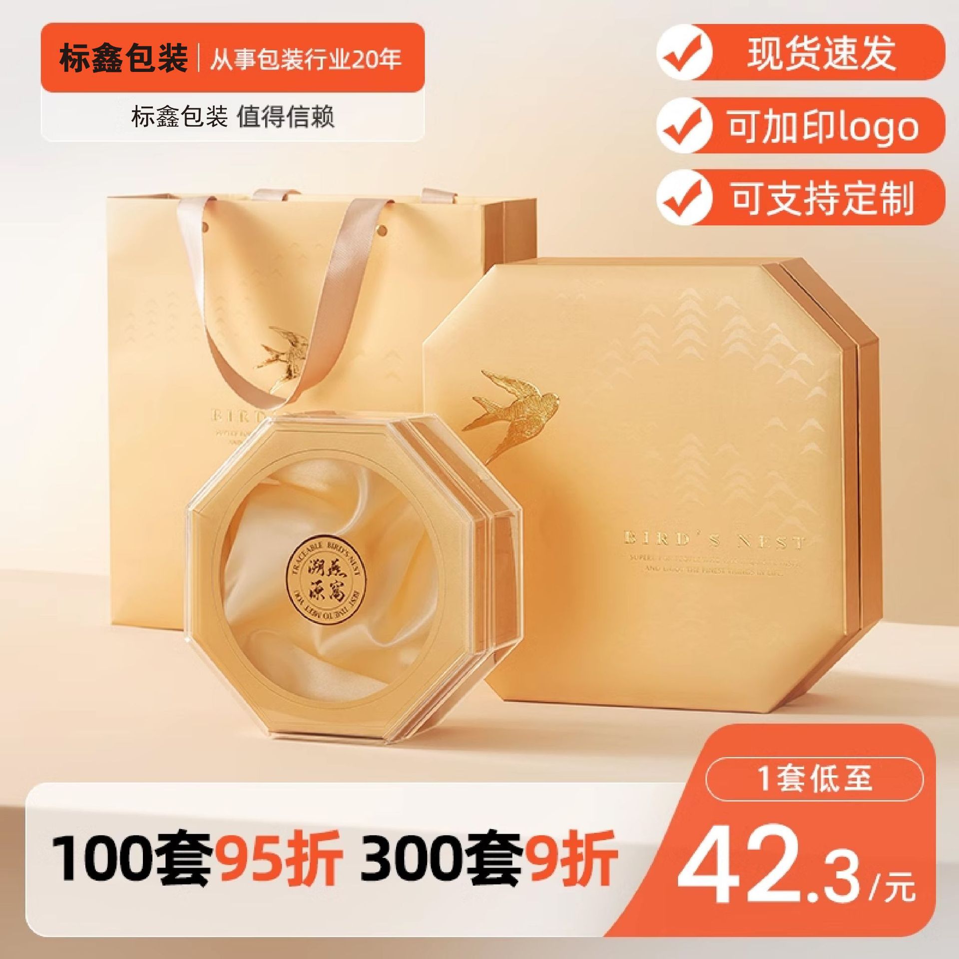 燕窩包装箱空箱オレンジ円形皮箱100グラム250グラム滋補品乾杯高級乾燕窩礼箱
