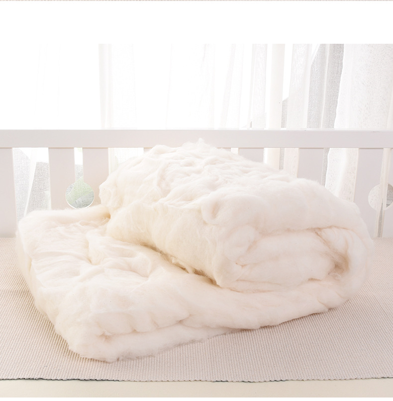 シルク綿の宇宙綿の芯の材料のふわふわしているニトリルの晴ナイロンの布団は芯の詰め物の赤ちゃんに水を洗って綿を羽毛にします。